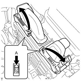 (b) While slightly pushing portion A of the lever of the ECM connector, turn the lever until it makes a click sound.