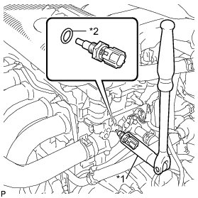 (b) Using a 19 mm deep socket wrench, remove the engine coolant temperature sensor.