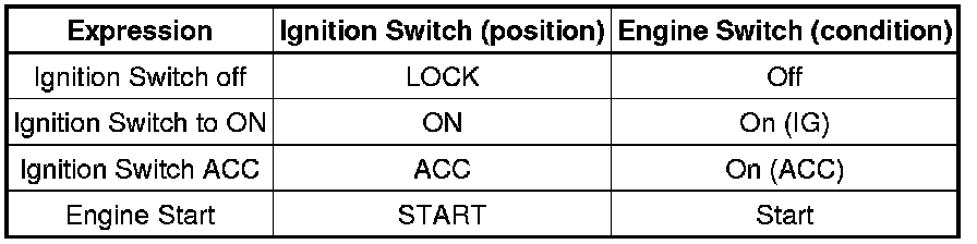 (a) The type of ignition switch used on this model differs according to the specification of the vehicle. The expressions listed in the table below are used in this section.