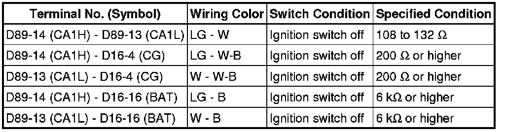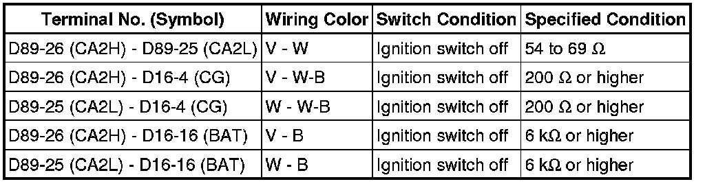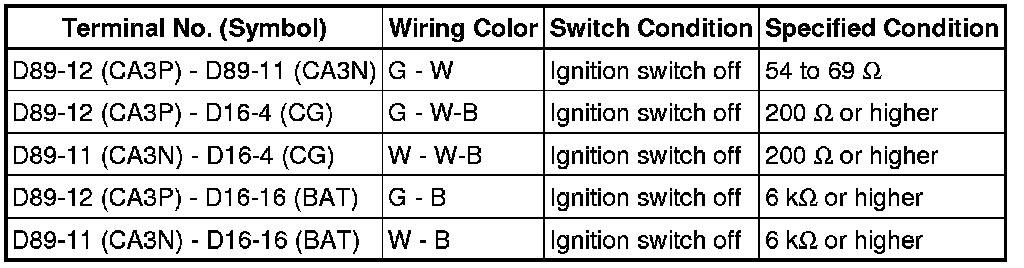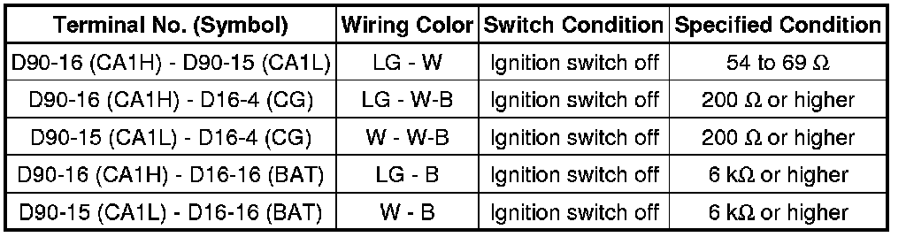 (a) Disconnect the cable from the negative (-) battery terminal before measuring the resistances of the main wire and the branch wire.
