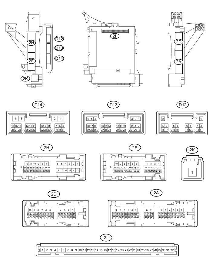 (a) Disconnect the D13 and D14 main body ECU connectors.