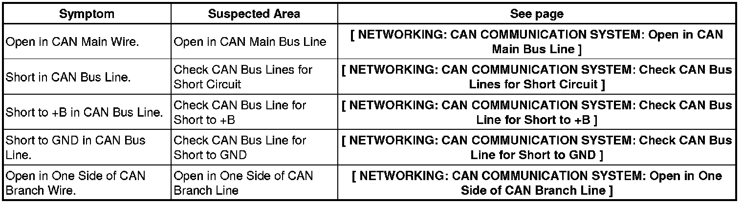NETWORKING: CAN COMMUNICATION SYSTEM: PROBLEM SYMPTOMS TABLE