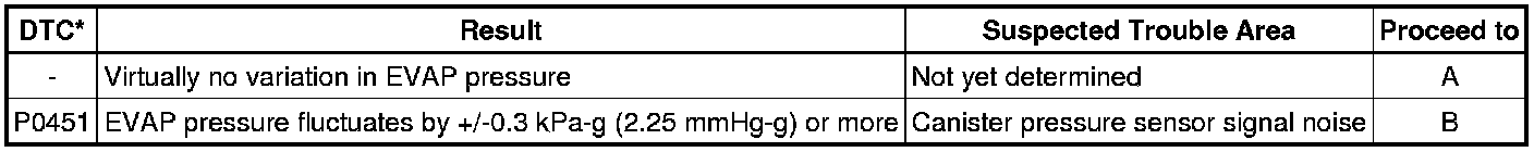 (b) Check the EVAP pressure again when it has stabilized. This pressure is the reference pressure (Step B).