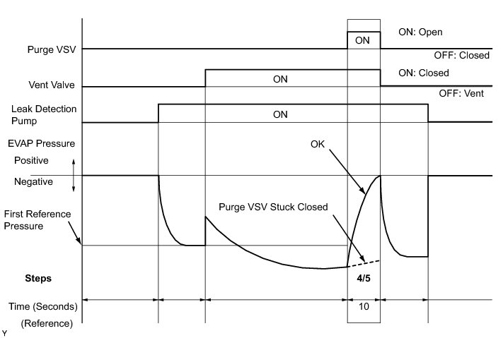 (b) Compare the EVAP pressure in step 3/5 and the second reference pressure (step 5/5).