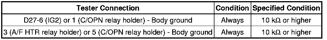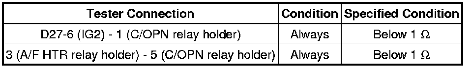 4. CHECK HARNESS AND CONNECTOR (C/OPN RELAY - IGNITION SWITCH, A/F HTR RELAY)