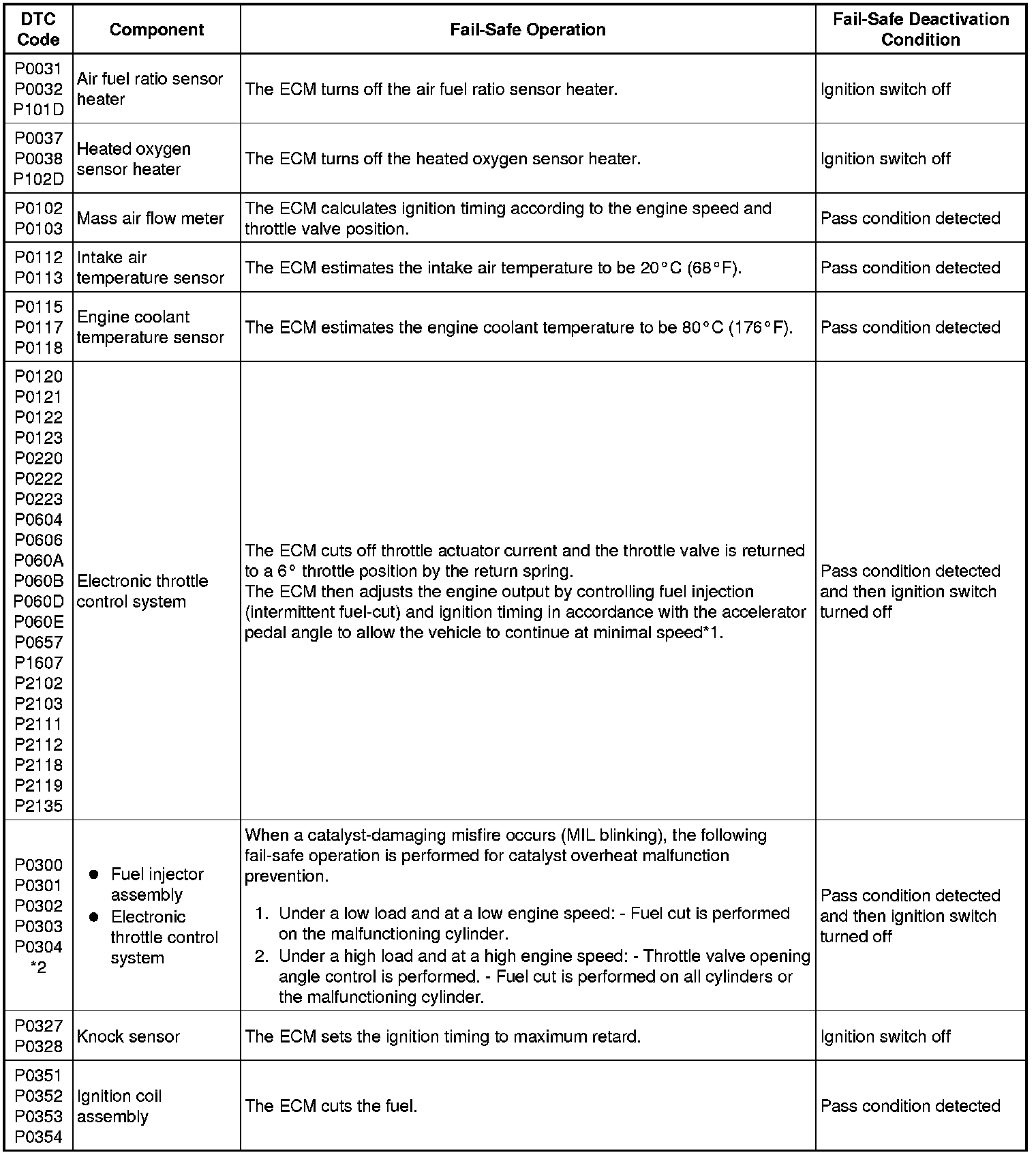 * *2: Misfire-related fail-safe operations occur when catalyst overheat malfunctions occur.