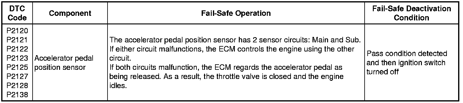 If any of the following DTCs are stored, the ECM enters fail-safe mode to allow the vehicle to be driven temporarily or stops fuel injection.