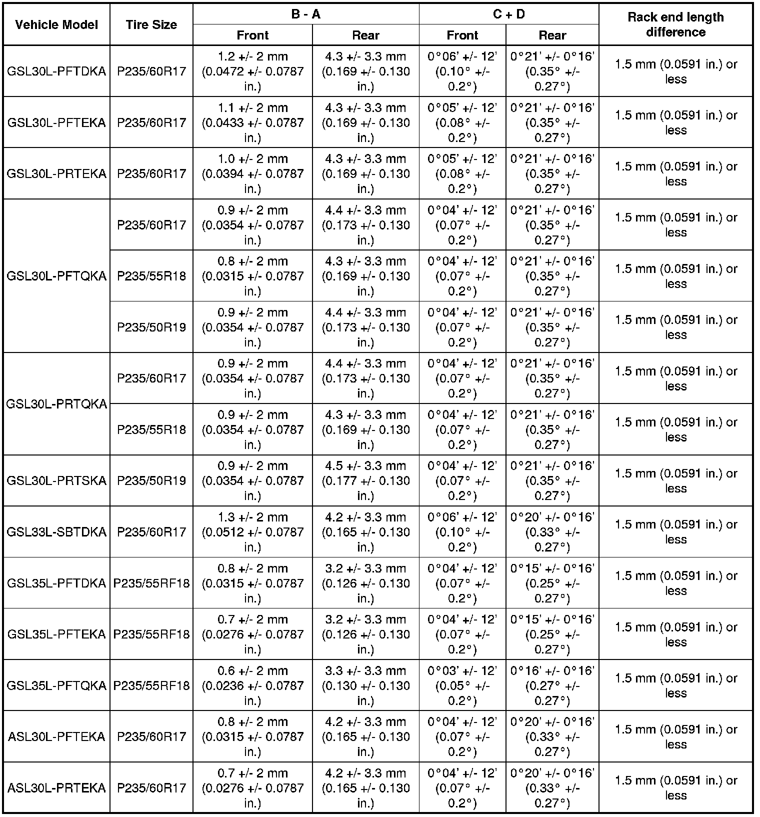 SPECIFICATIONS: ALIGNMENT / HANDLING DIAGNOSIS: SERVICE DATA