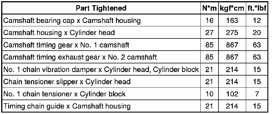 SPECIFICATIONS: 1AR-FE ENGINE MECHANICAL: TORQUE SPECIFICATIONS