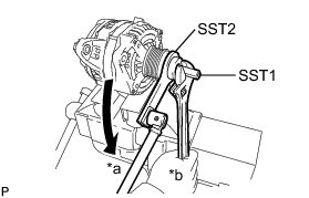 (d) Loosen the pulley by turning SST2 in the direction shown in the illustration.