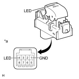 (1) Apply battery voltage to the power window regulator switch assembly and check that the LED illuminates.