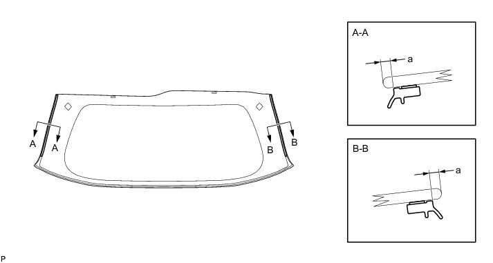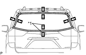 (2) Lightly press the back door glass to ensure that the back door glass is securely fit to the vehicle body (when glass without a clip is used).
