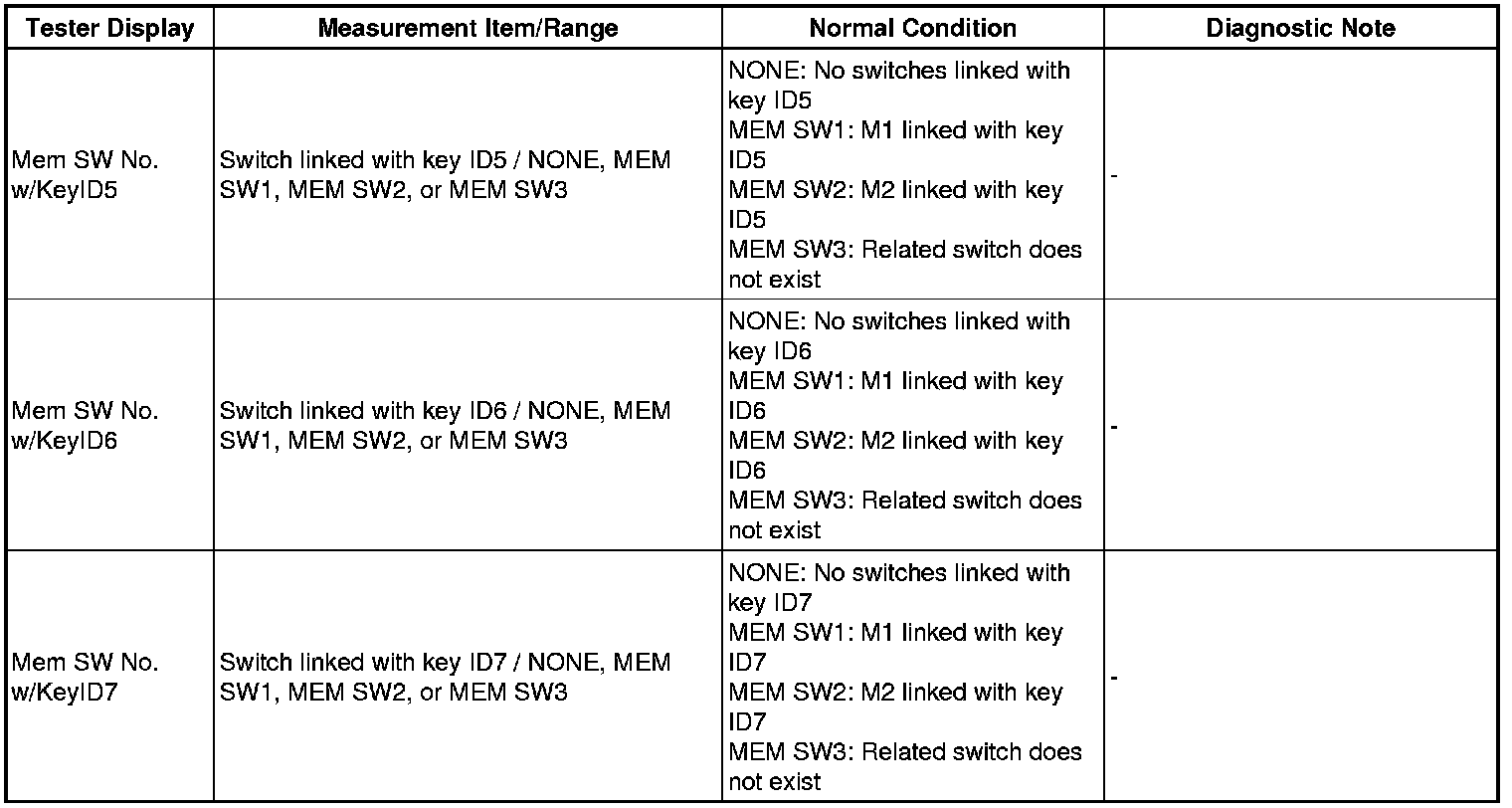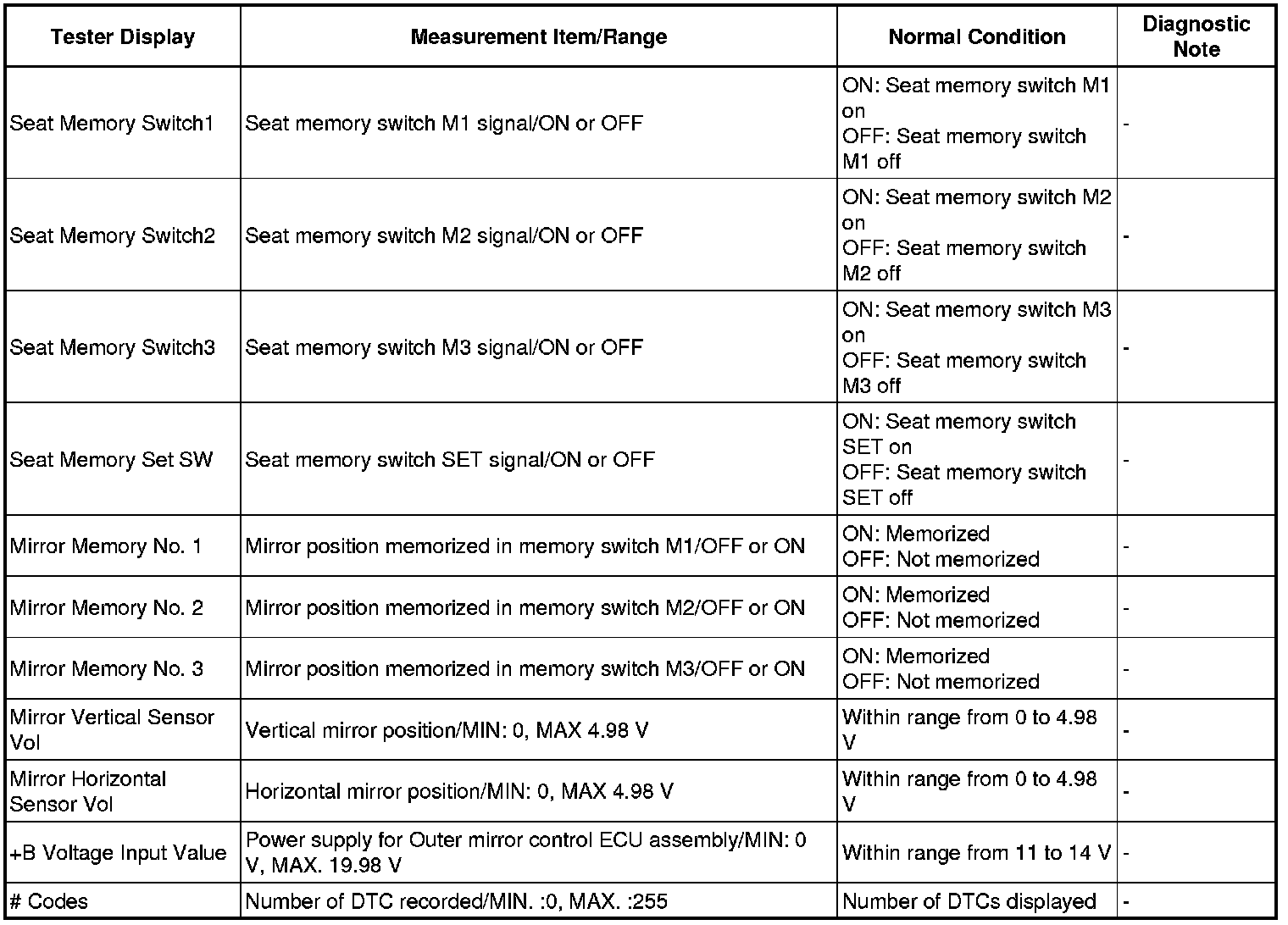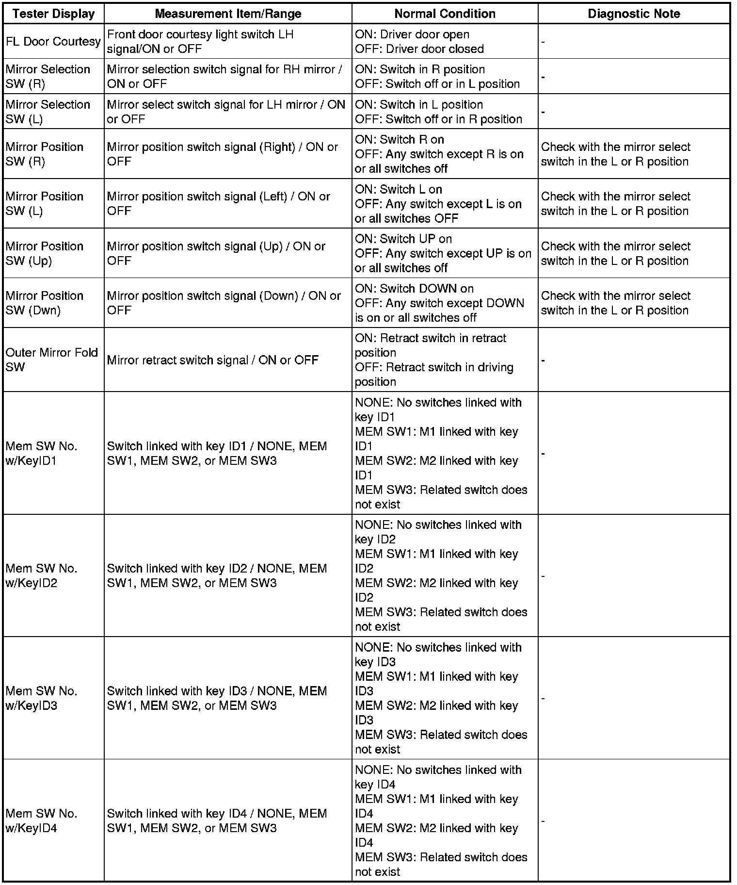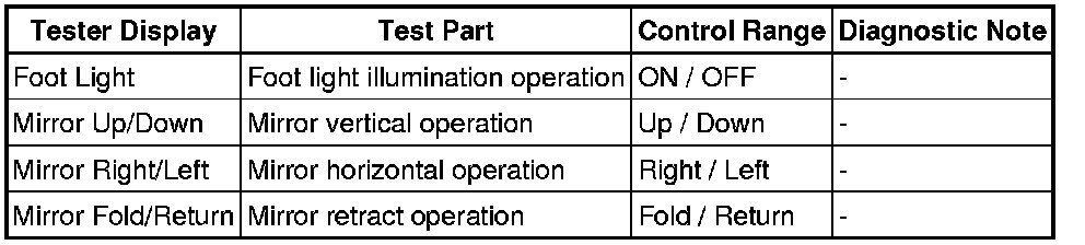 MIRROR (EXT): POWER MIRROR CONTROL SYSTEM (w/ Memory): DATA LIST / ACTIVE TEST