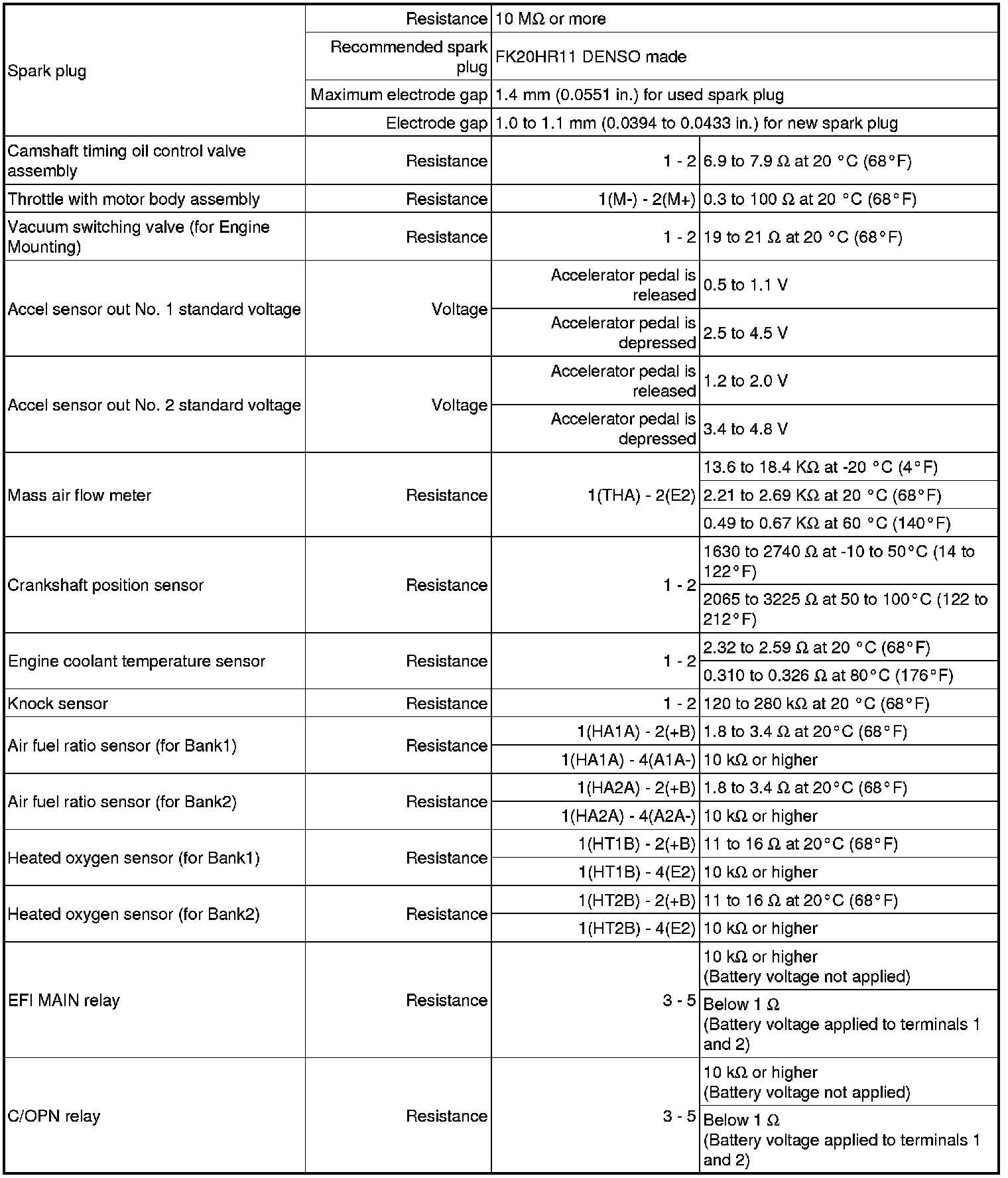 SPECIFICATIONS: 2GR-FE ENGINE CONTROL: SERVICE DATA