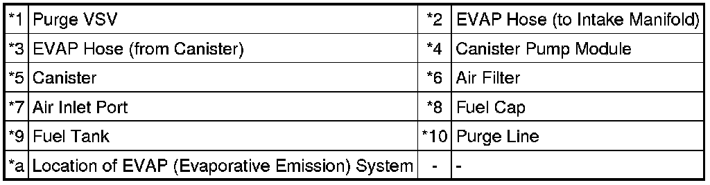 While the engine is running, if a predetermined condition (closed-loop, etc.) is met, the purge VSV is opened by the ECM and stored fuel vapors in the canister are purged into the intake manifold. The ECM changes the duty cycle of the purge VSV to control purge flow volume.