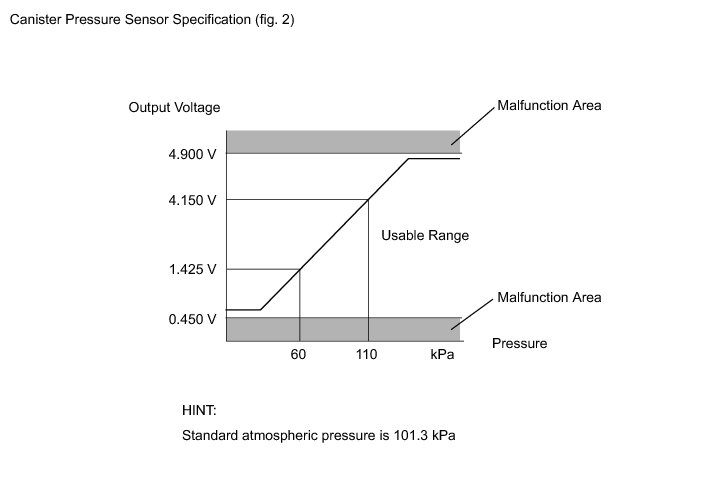 The leak detection pump creates negative pressure (vacuum) in the EVAP system and the pressure is measured. Finally, the ECM monitors for leaks from the EVAP system, and malfunctions in both the canister pump module and purge VSV based on the EVAP pressure.