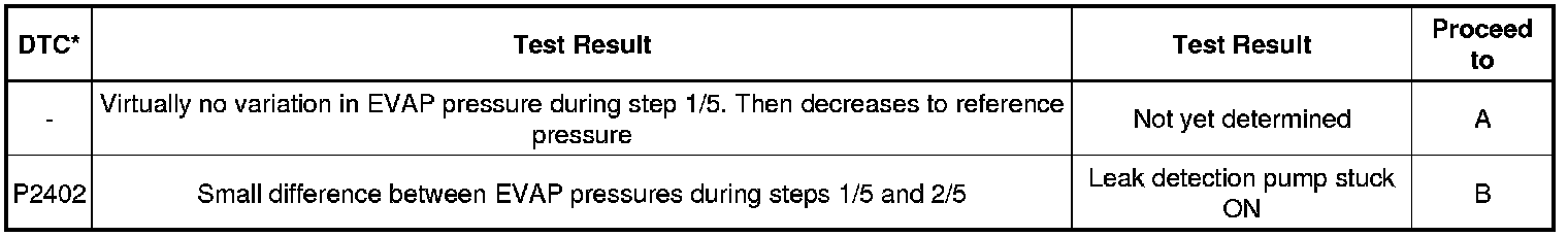 If the reference pressure difference between the first and second checks is greater than the specification, all the DTCs relating to the reference pressure (P043E, P043F, P2401, P2402 and P2419) are stored.