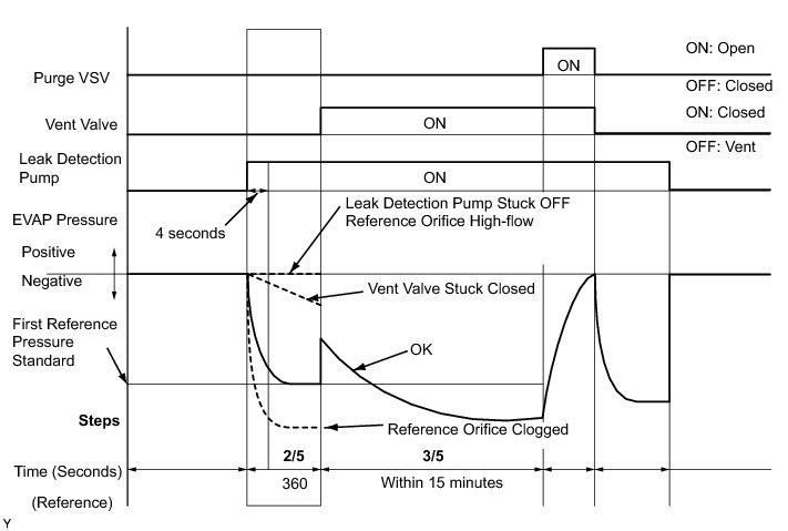 (b) Compare the EVAP pressure in step 3/5 and the second reference pressure (step 5/5).