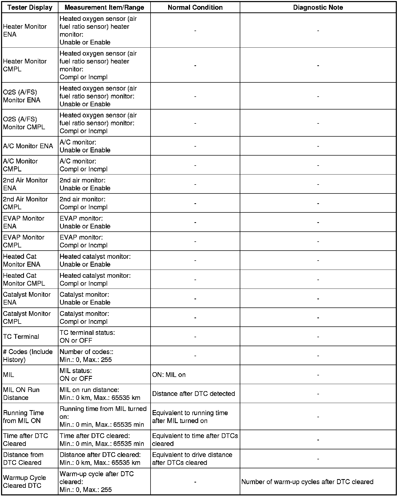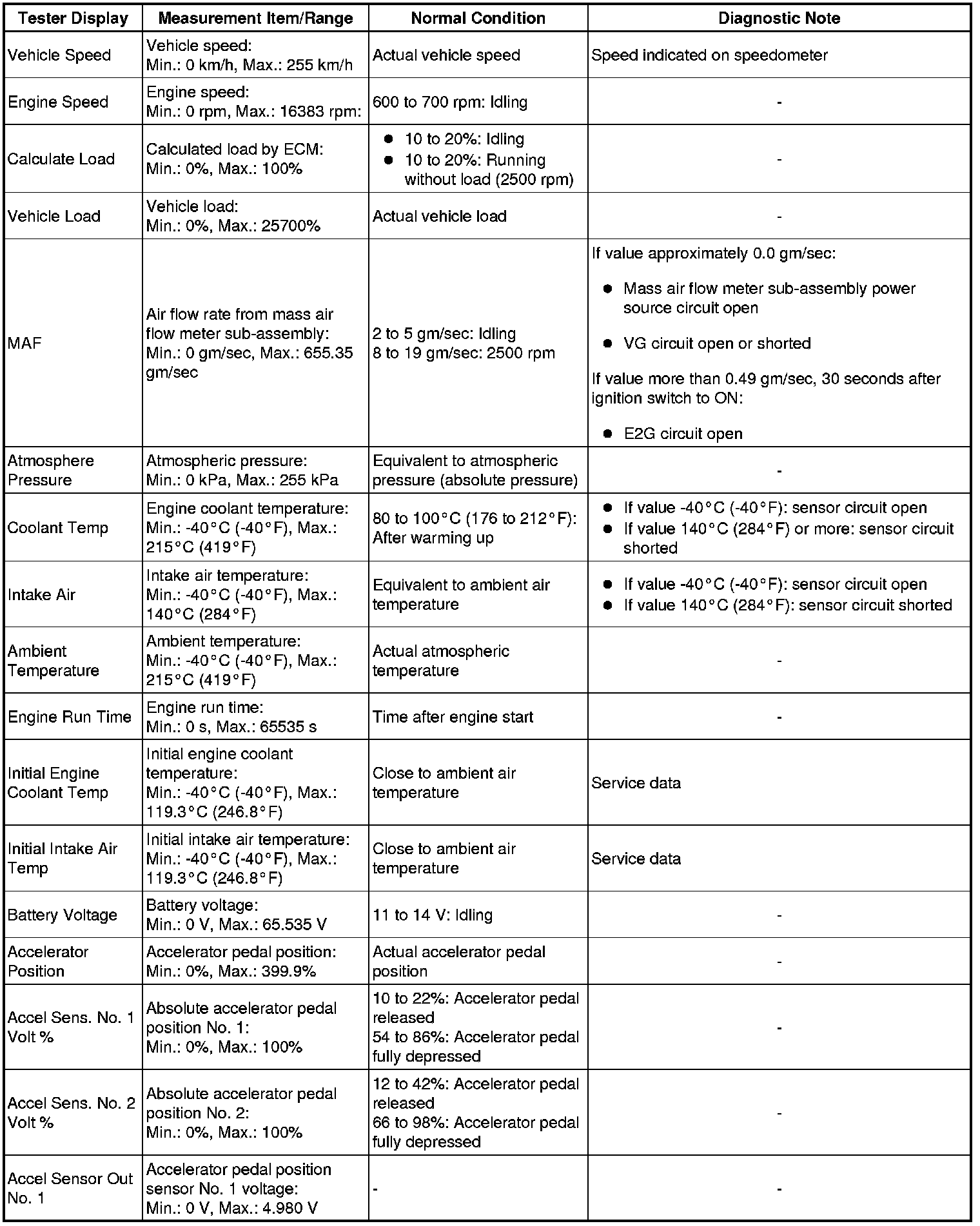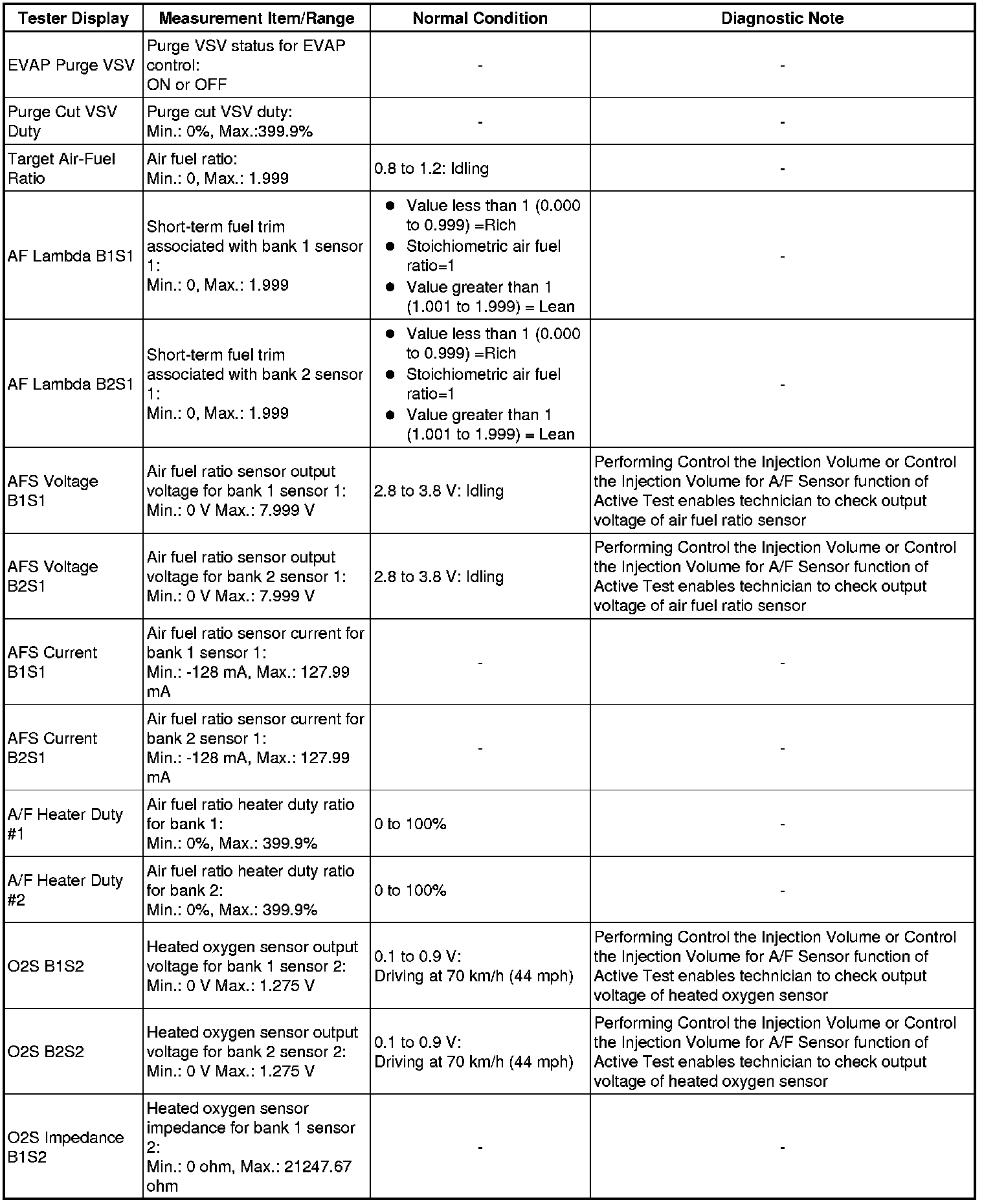 Using the Techstream to read the Data List allows the values or states of switches, sensors, actuators and other items to be read without removing any parts. This non-intrusive inspection can be very useful because intermittent conditions or signals may be discovered before parts or wiring is disturbed. Reading the Data List information early in troubleshooting is one way to save diagnostic time.