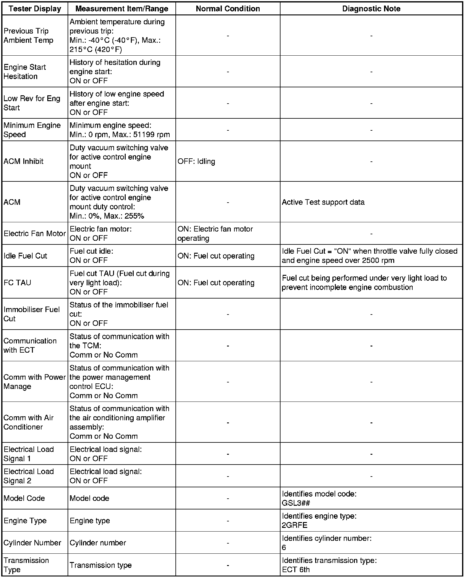 2GR-FE ENGINE CONTROL: SFI SYSTEM: DATA LIST / ACTIVE TEST