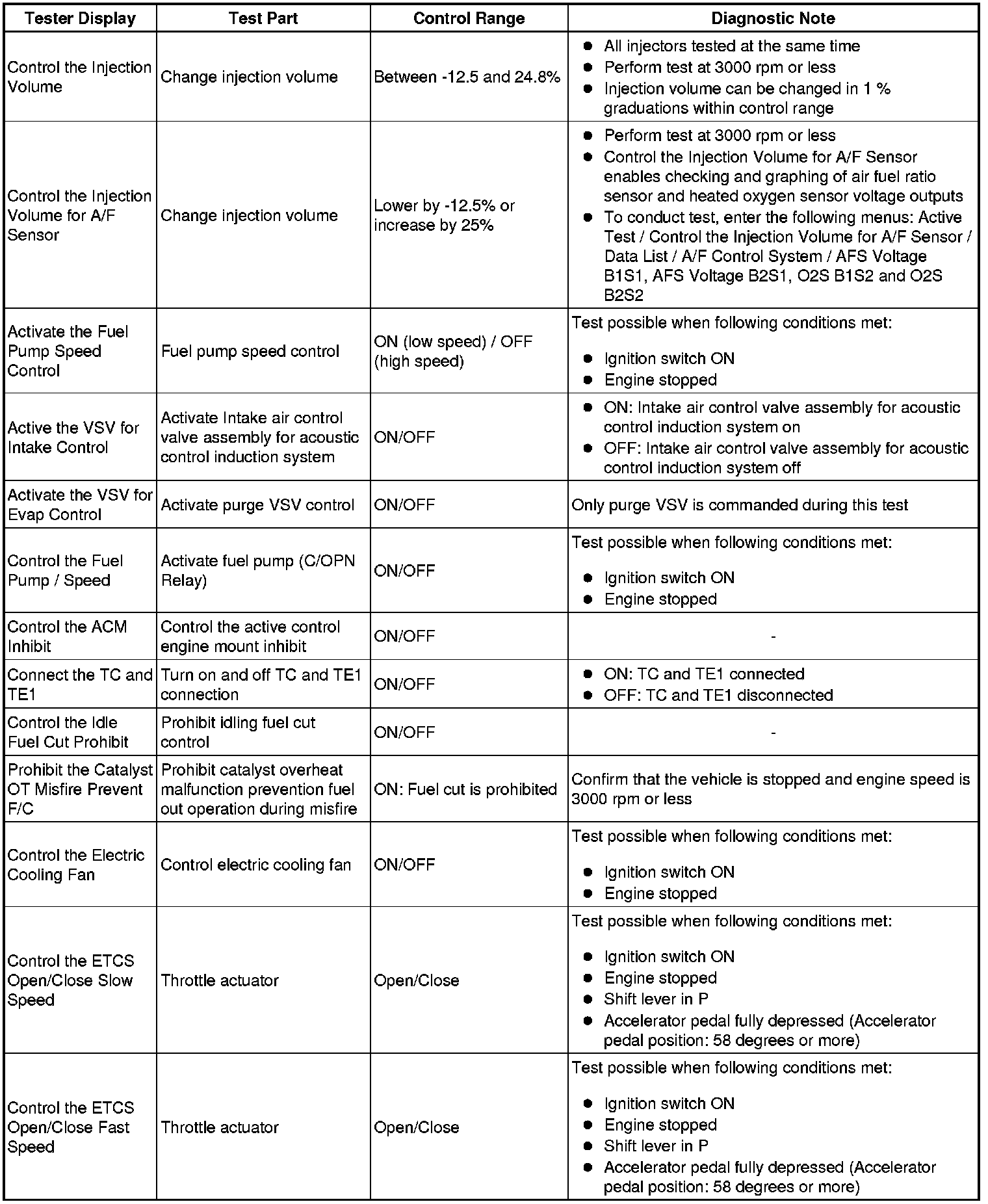 Using the Techstream to perform Active Tests allows relays, VSVs, actuators and other items to be operated without removing any parts. This non-intrusive functional inspection can be very useful because intermittent operation may be discovered before parts or wiring is disturbed. Performing Active Tests early in troubleshooting is one way to save diagnostic time. Data List information can be displayed while performing Active Tests.