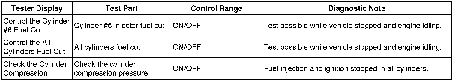 *: While the Active Test item Check the Cylinder Compression is being performed, the fuel and ignition of all cylinders is cut. At this time, the ECM measures the speed of each cylinder while the engine is being cranked.