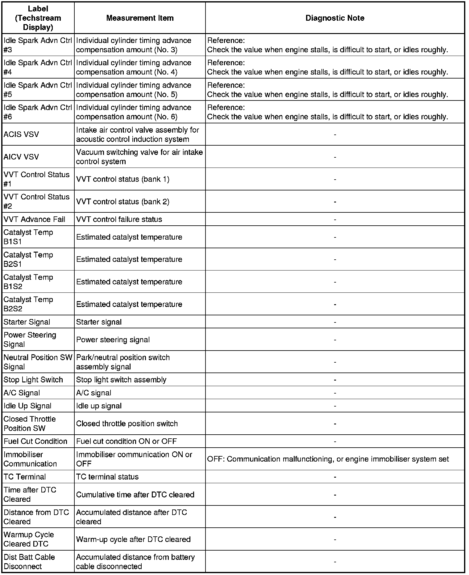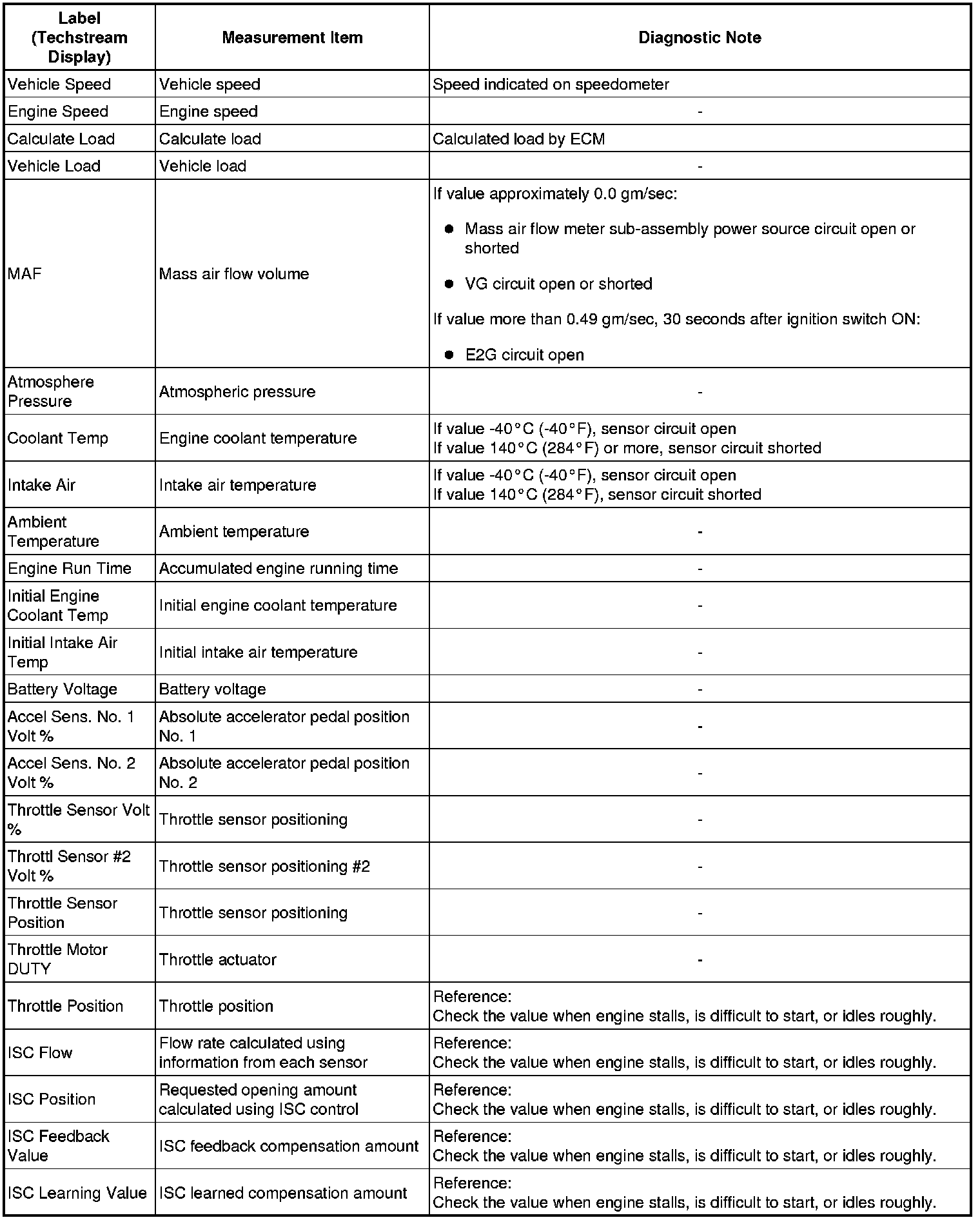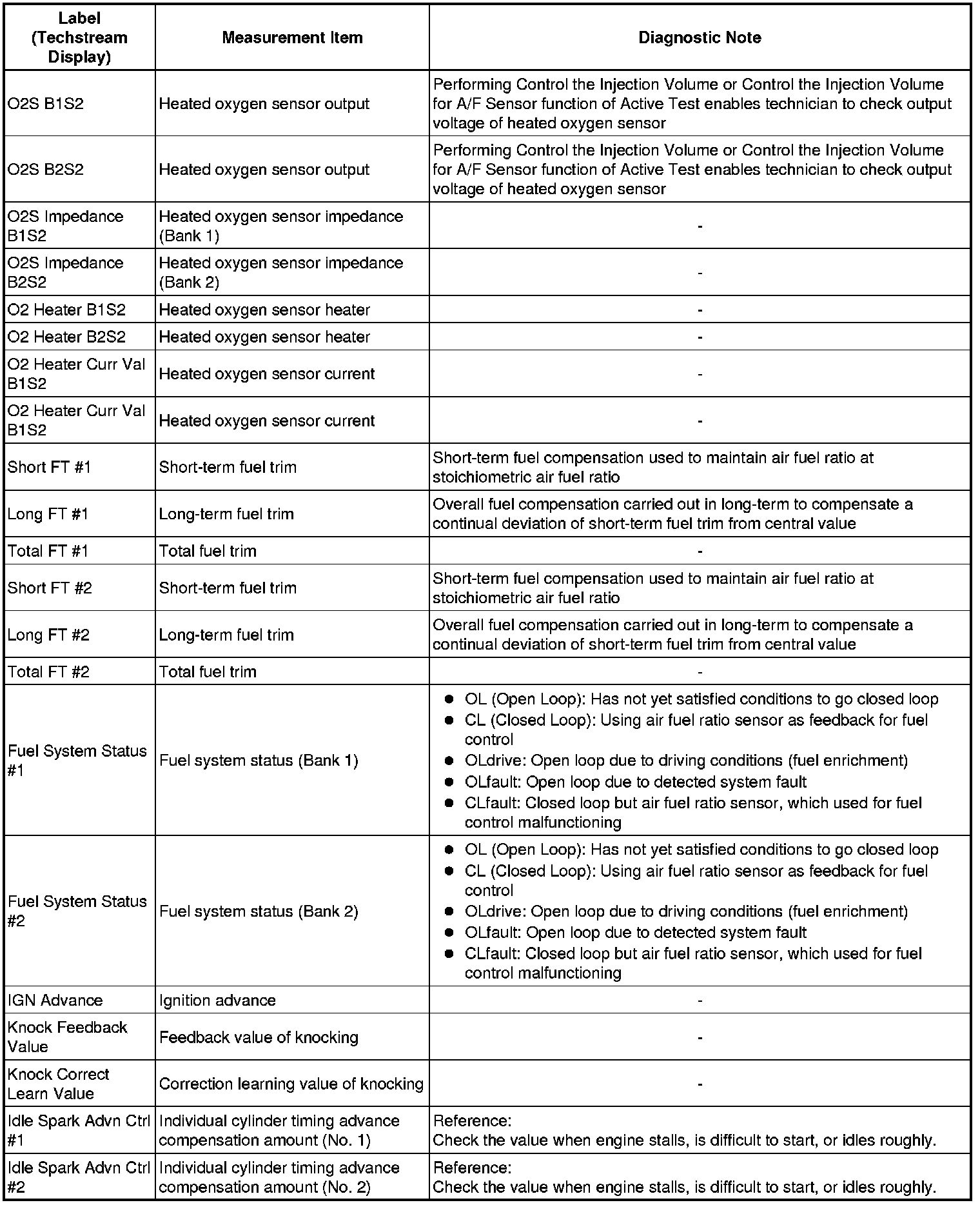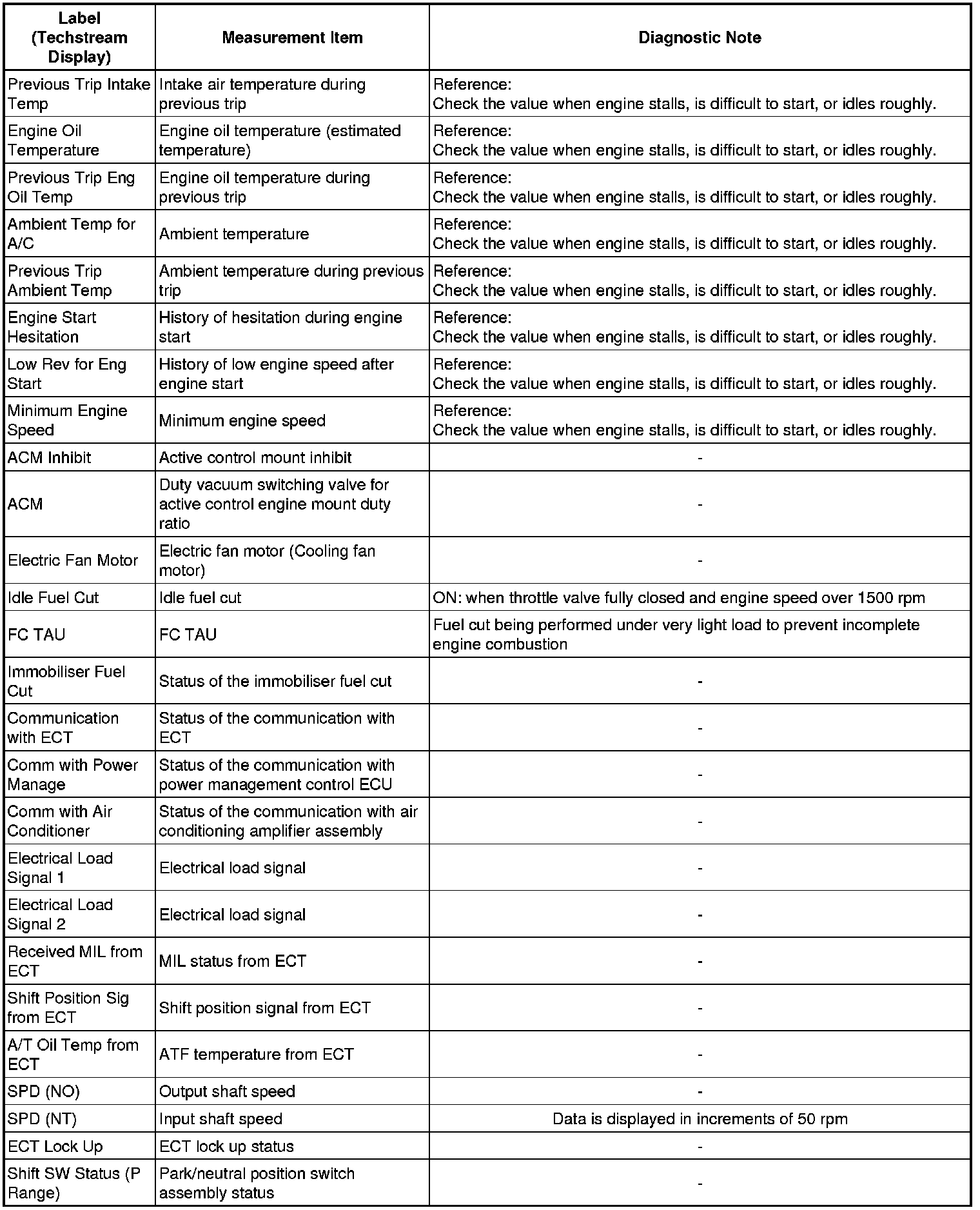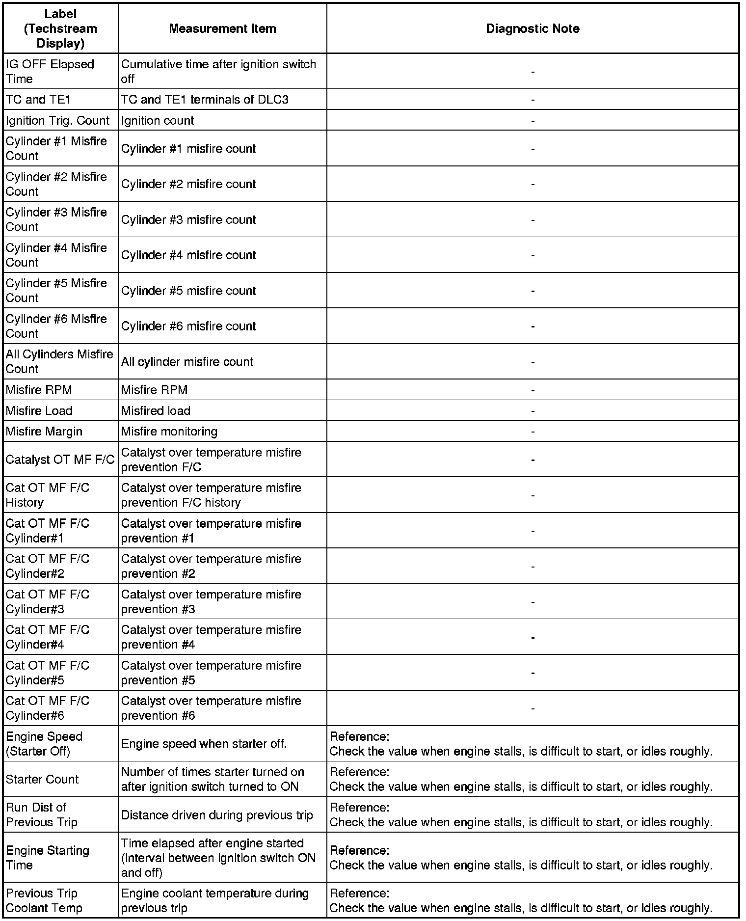 2GR-FE ENGINE CONTROL: SFI SYSTEM: FREEZE FRAME DATA