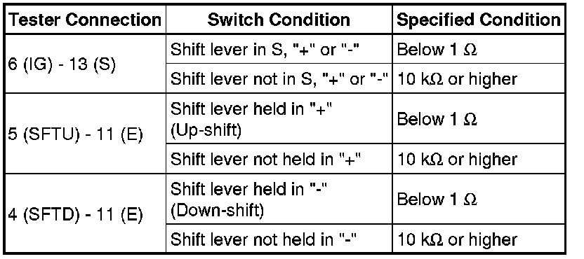 When the shift lever is in S and it is moved toward "-" or "+", it is possible to select different shift ranges (1st through 6th ranges).