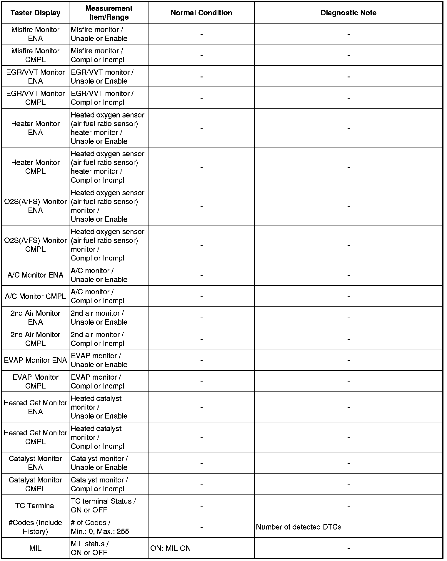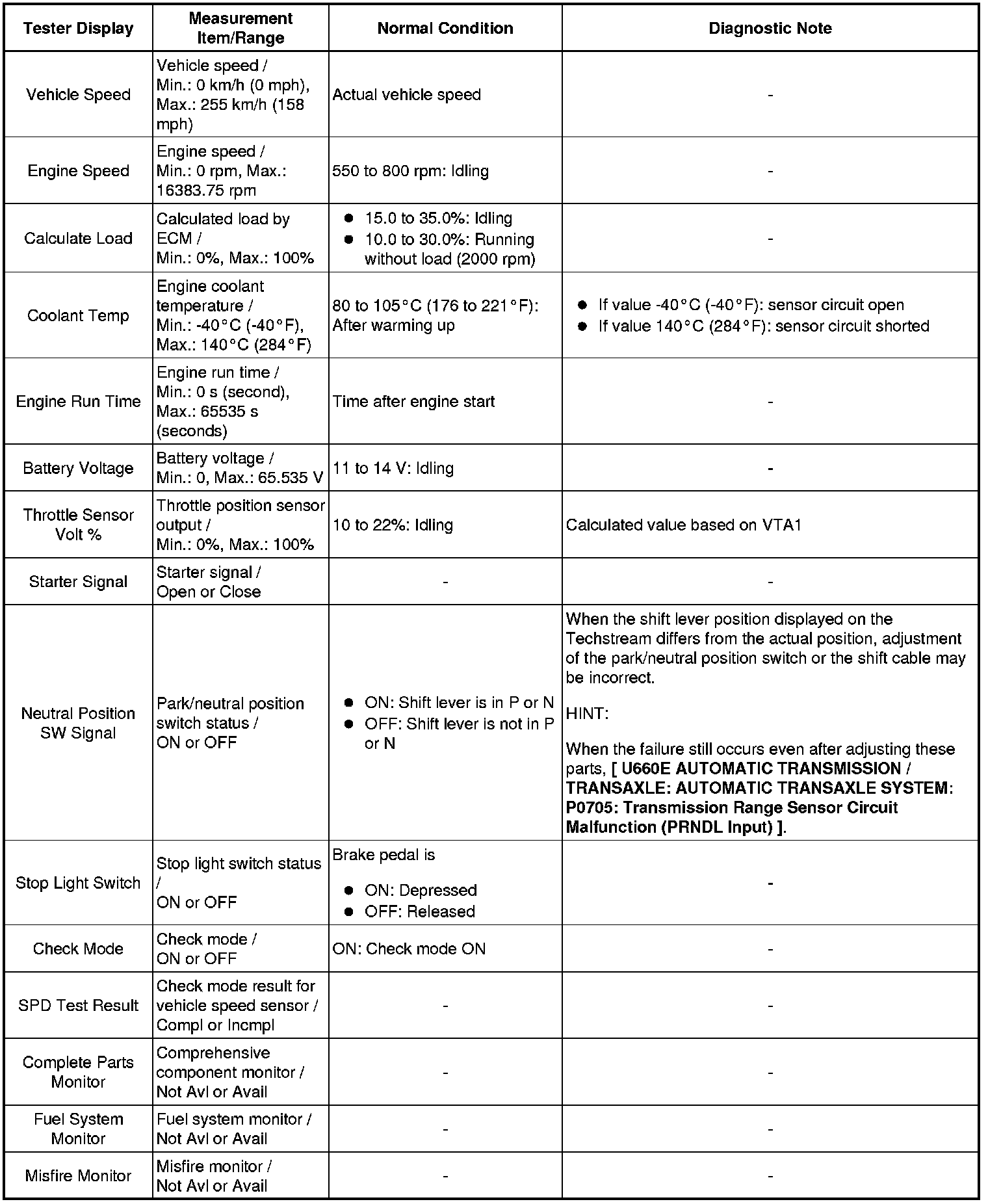 Using the Techstream to read the Data List allows the values or states of switches, sensors, actuators and other items to be read without removing any parts. This non-intrusive inspection can be very useful because intermittent conditions or signals may be discovered before parts or wiring is disturbed. Reading the Data List information early in troubleshooting is one way to save diagnostic time.
