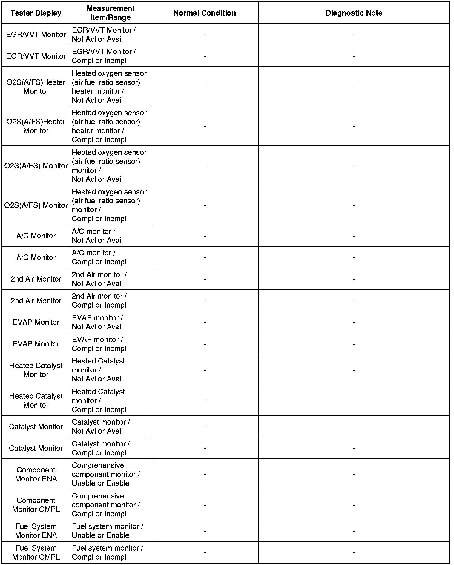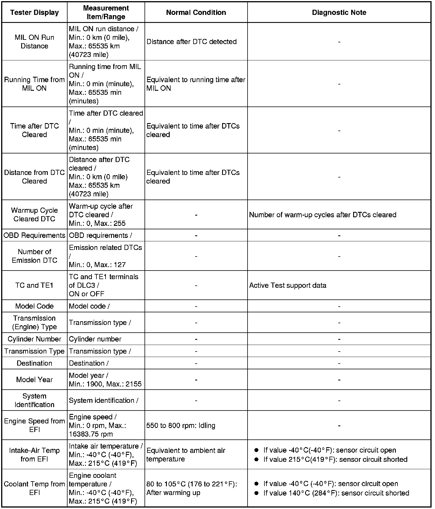 In the table below, the values listed under "Normal Condition" are reference values. Do not depend solely on these reference values when deciding whether a part is faulty or not.