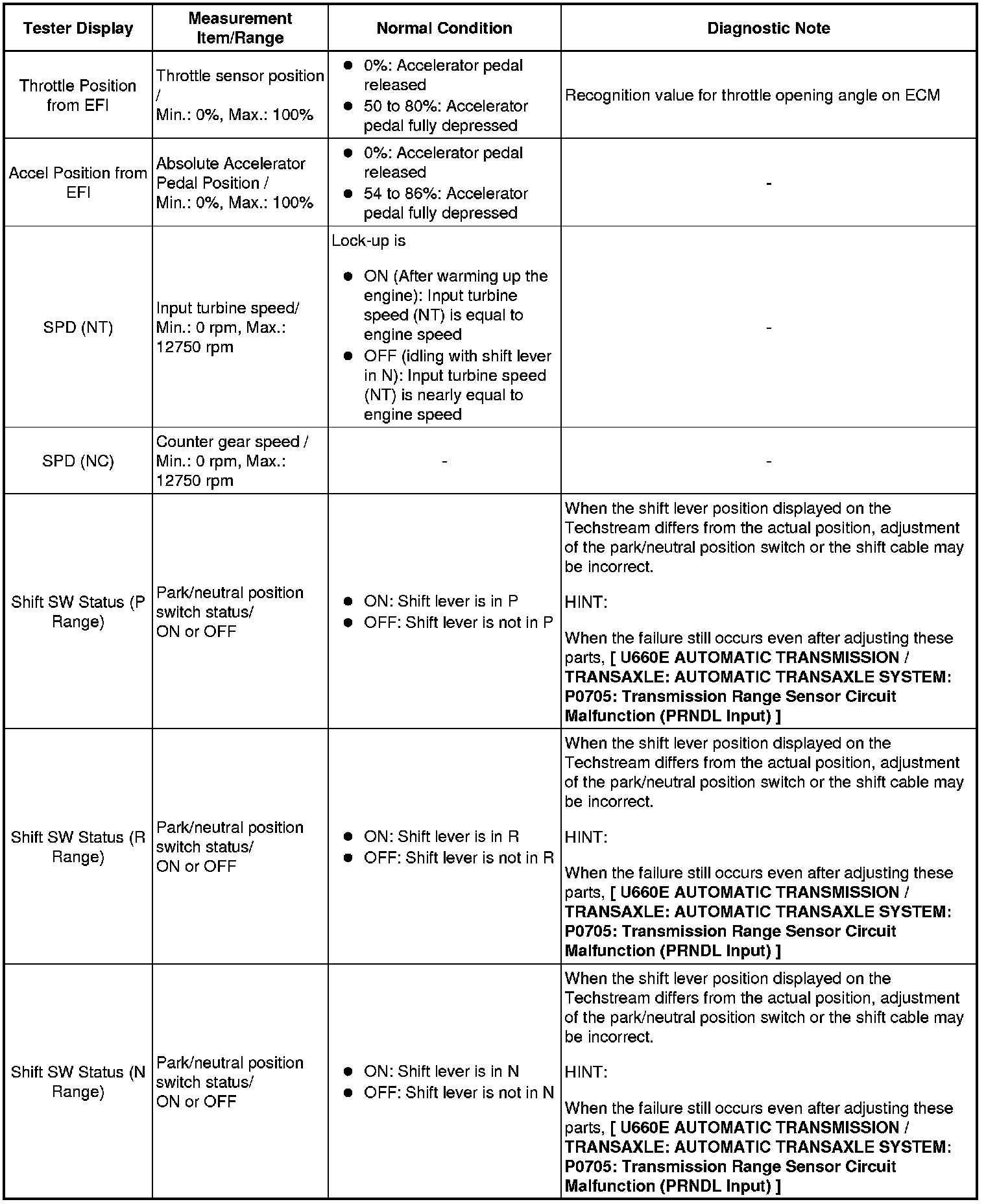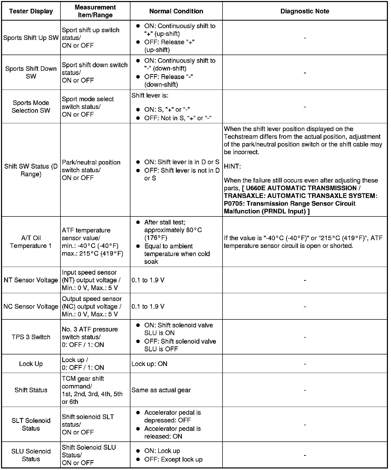 U660E AUTOMATIC TRANSMISSION / TRANSAXLE: AUTOMATIC TRANSAXLE SYSTEM: DATA LIST / ACTIVE TEST