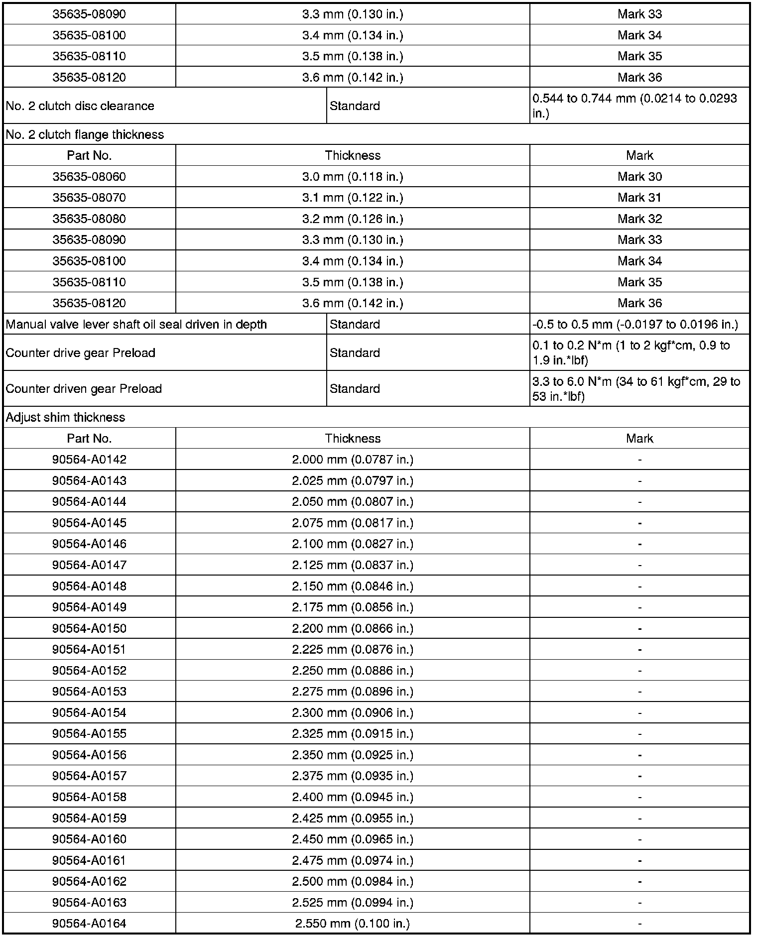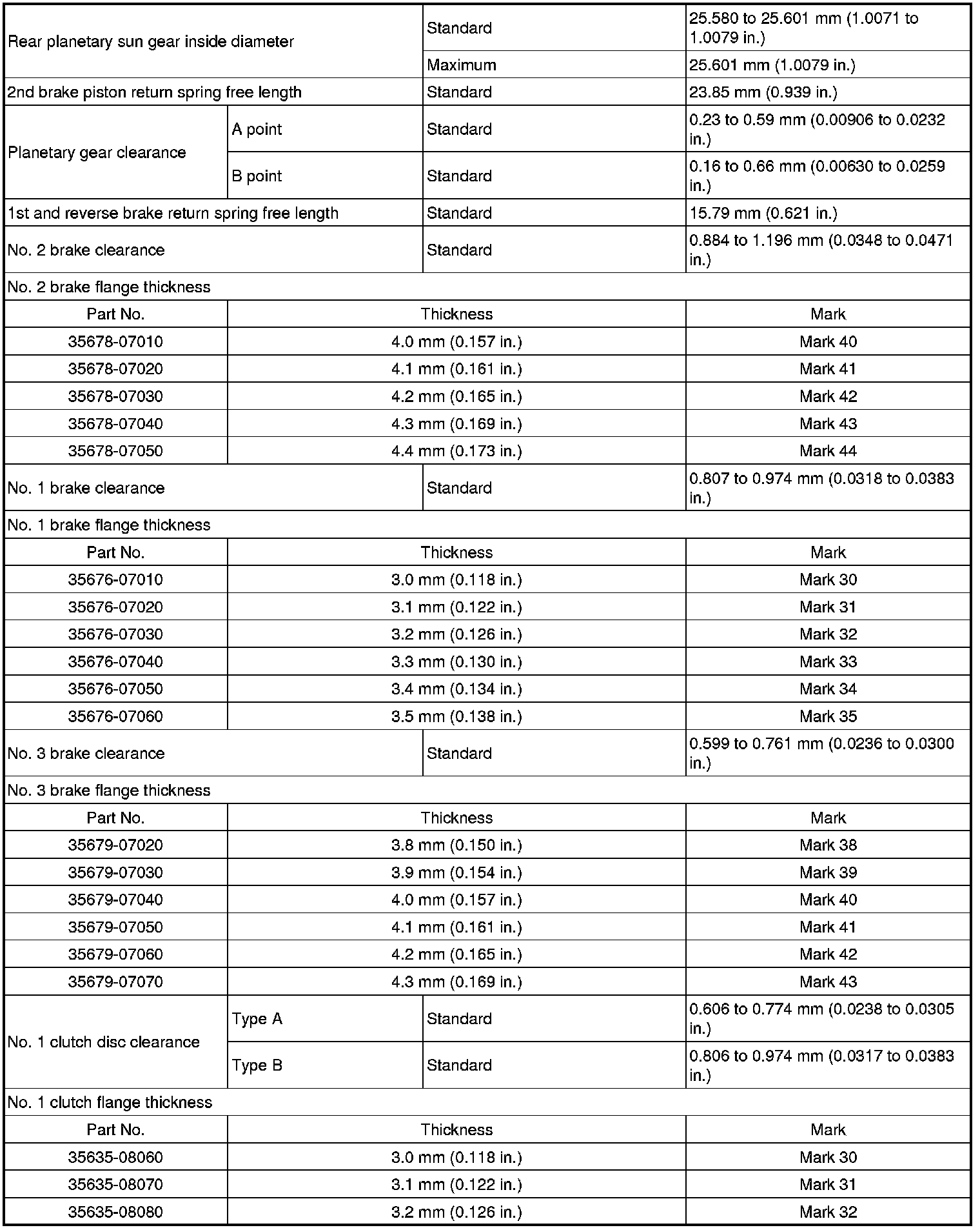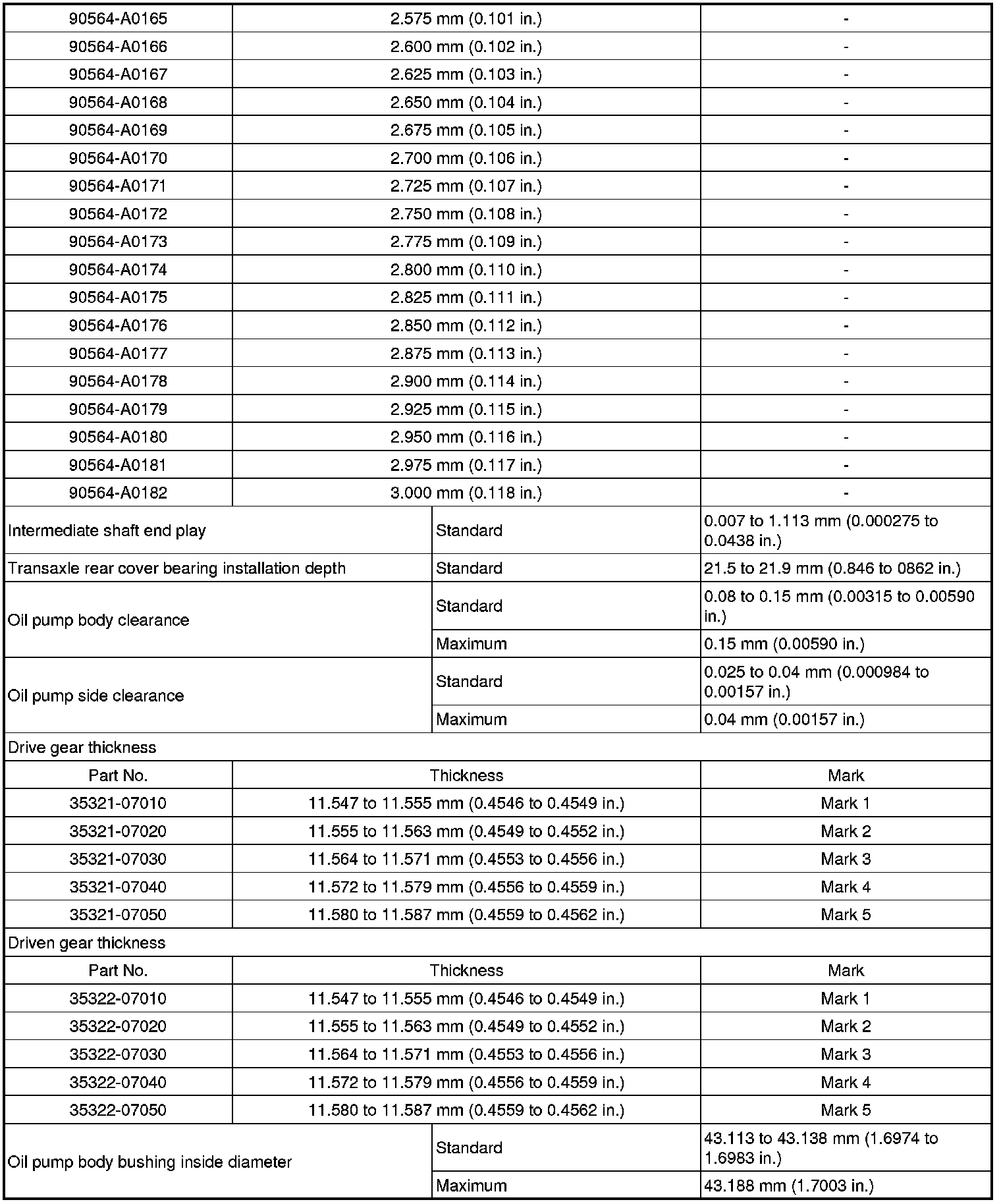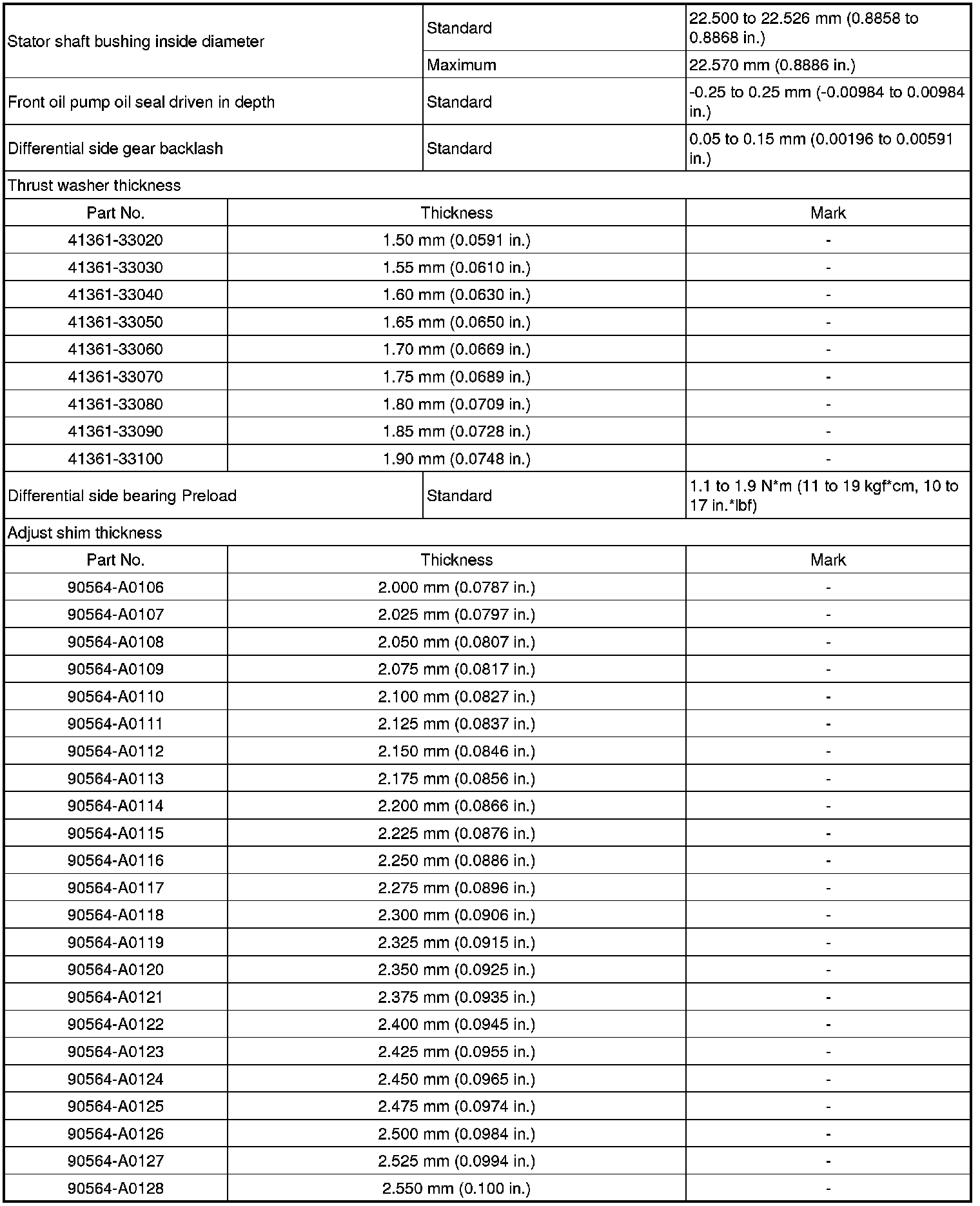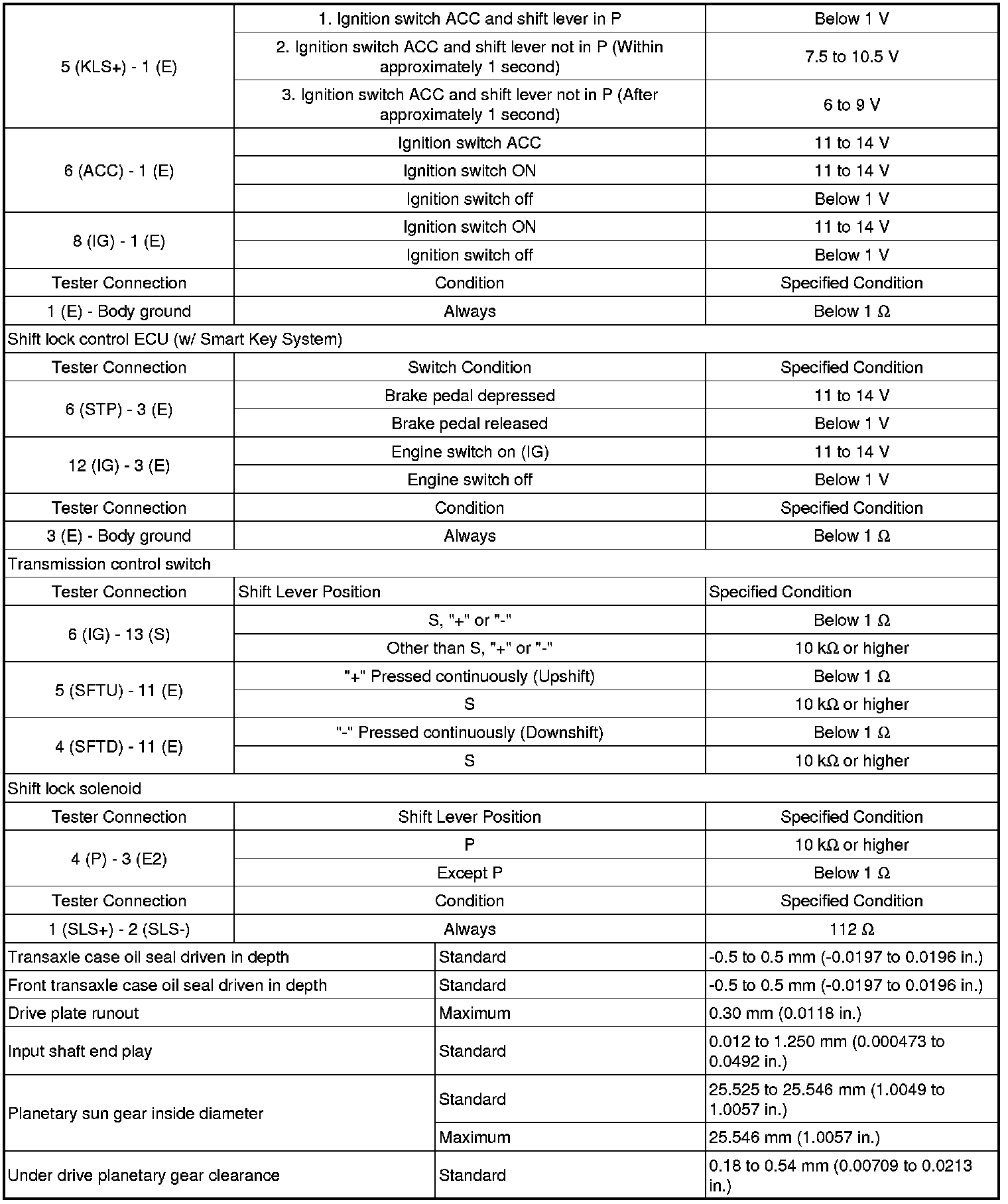 SPECIFICATIONS: U660E AUTOMATIC TRANSMISSION / TRANSAXLE: SERVICE DATA