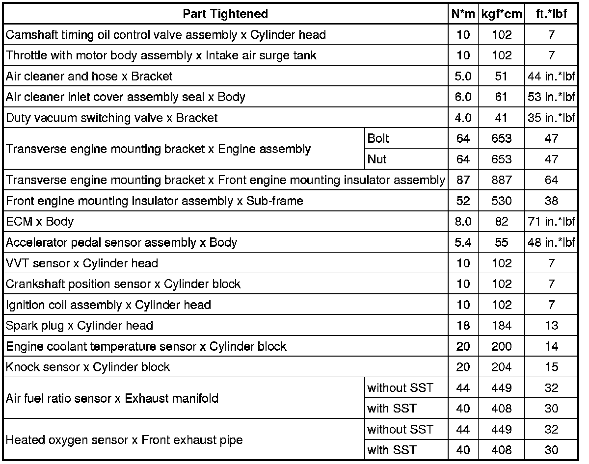 SPECIFICATIONS: 2GR-FE ENGINE CONTROL: TORQUE SPECIFICATIONS