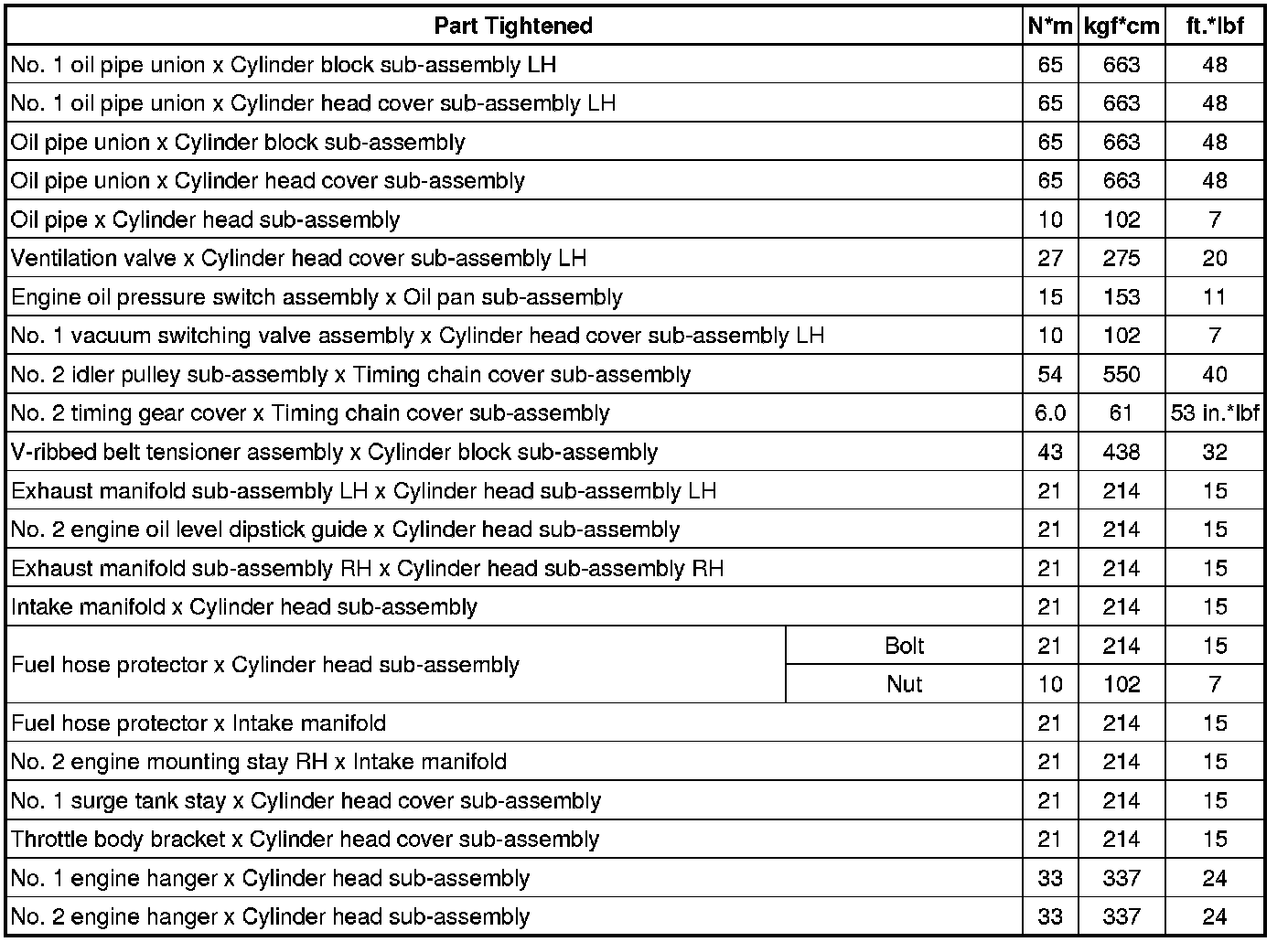 SPECIFICATIONS: 2GR-FE ENGINE MECHANICAL: TORQUE SPECIFICATIONS