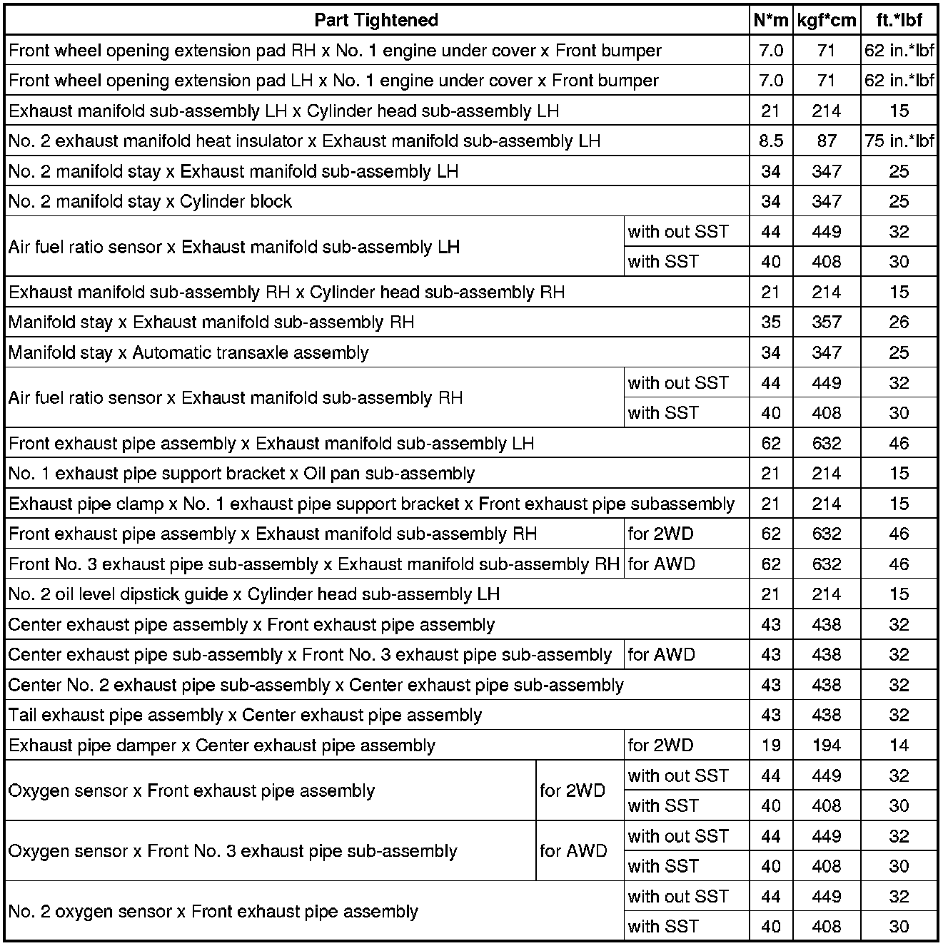 SPECIFICATIONS: 2GR-FE INTAKE / EXHAUST: TORQUE SPECIFICATIONS