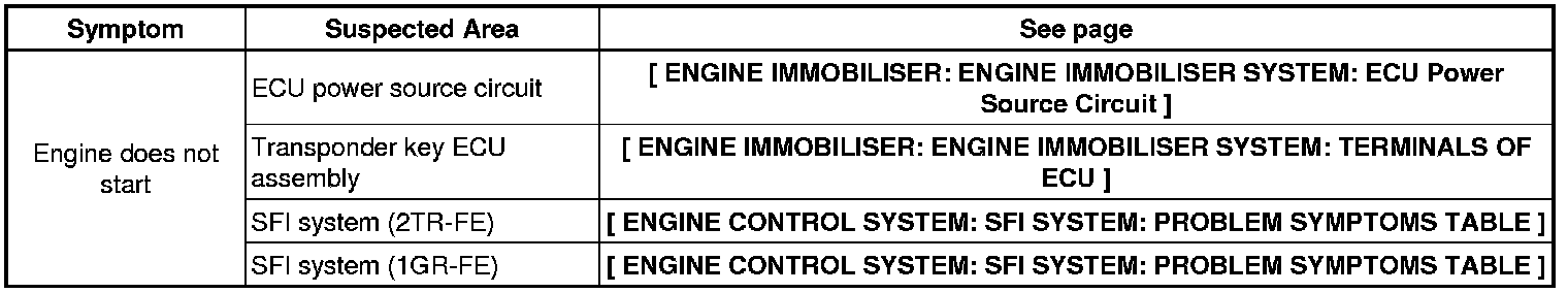 ENGINE IMMOBILISER: ENGINE IMMOBILISER SYSTEM: PROBLEM SYMPTOMS TABLE