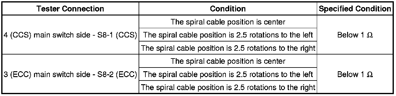 2. CHECK HARNESS AND CONNECTOR (CRUISE CONTROL MAIN SWITCH - SPIRAL CABLE SUB-ASSEMBLY)