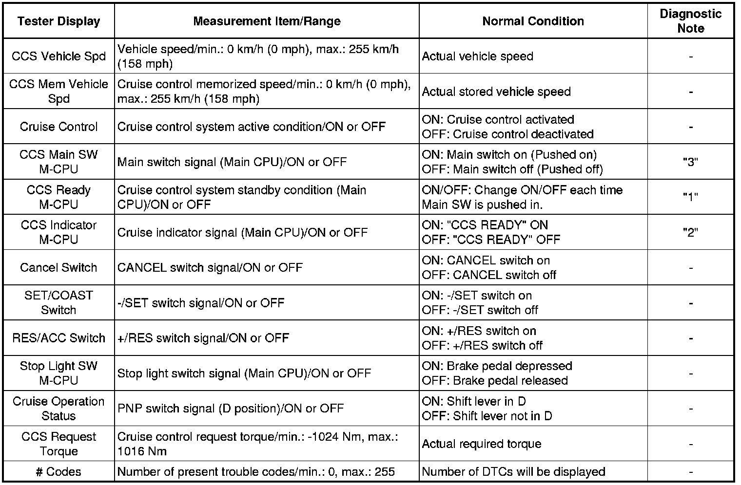 CRUISE CONTROL: CRUISE CONTROL SYSTEM: DATA LIST / ACTIVE TEST