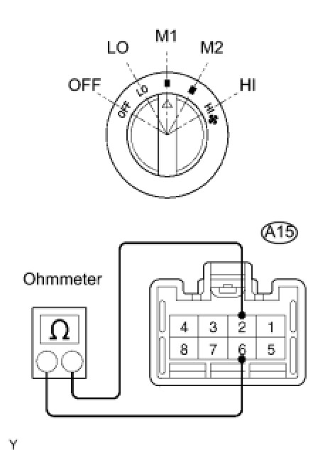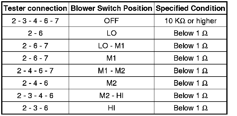(1) Using an ohmmeter, measure the resistance and check the results in accordance with the values in the table below.