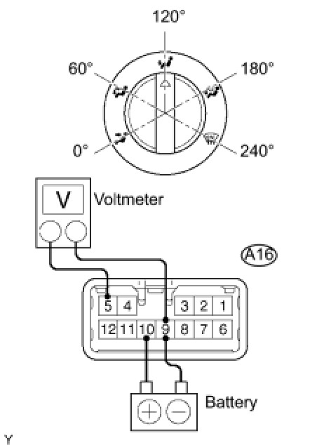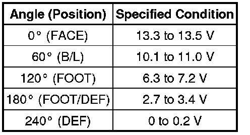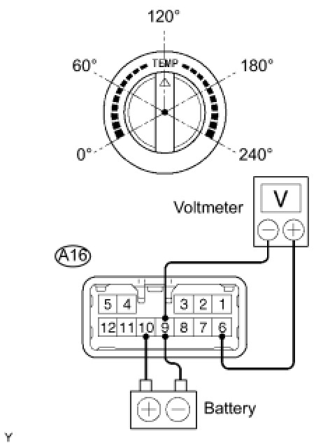 (2) Connect the positive (+) tester probe of a voltmeter to terminal 6 (AMSW) and the negative (-) tester probe to terminal 9 (GND), then check the voltage.