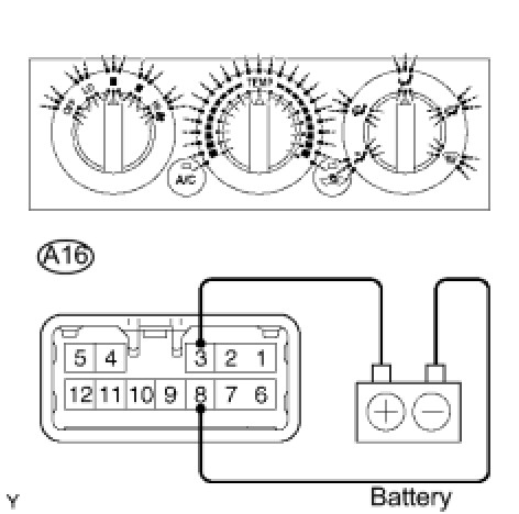 (1) Connect the positive (+) lead from the battery to terminal 3 (ILL+) and negative (-) lead to terminal 8 (ILL-), then check that the illuminations light up.