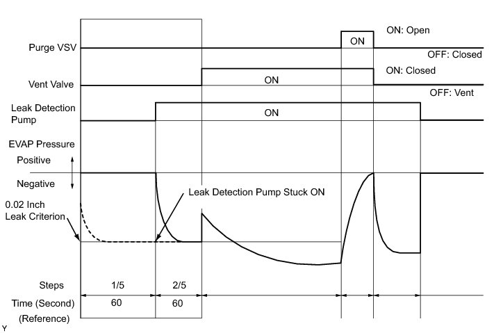 (b) Compare the EVAP pressure in step 3/5 and the second 0.02 inch leak criterion (step 5/5).