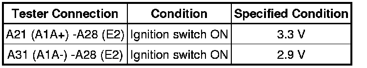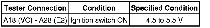 (1) Using SST (turbocharger pressure gauge), apply air to the turbo pressure sensor at the pressures shown in the table below.