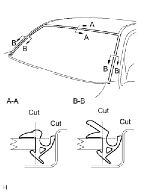 (a) Using a knife, cut off the windshield upper moulding outer, as shown in the illustration.