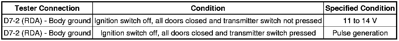 (a) Inspect the diagnosis outputs when the door control transmitter switch is held down. The diagnosis outputs can be checked with the outputs of the room light.