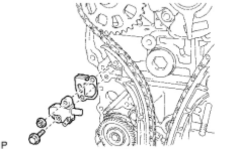 (b) Remove the pin from the chain tensioner and release the plunger.
