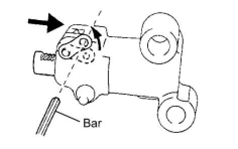 Assemble the chain tensioner with the 3.0 mm (0.118 in.) diameter bar installed, then remove the bar after assembly. When doing this, avoid pushing the vibration damper against the chain.