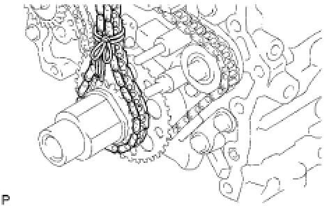 (b) Use a rope to tie the chain of the crankshaft timing sprocket. Tie the rope near the sprocket.