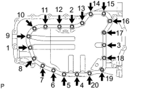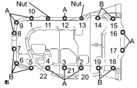 (c) Uniformly tighten the 18 bolts and 2 nuts in the sequence shown in the illustration.