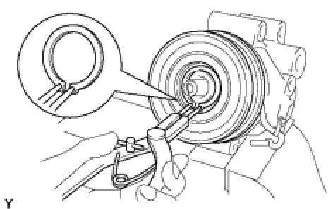 (c) Using a snap ring expander, remove the snap ring and magnet clutch rotor.